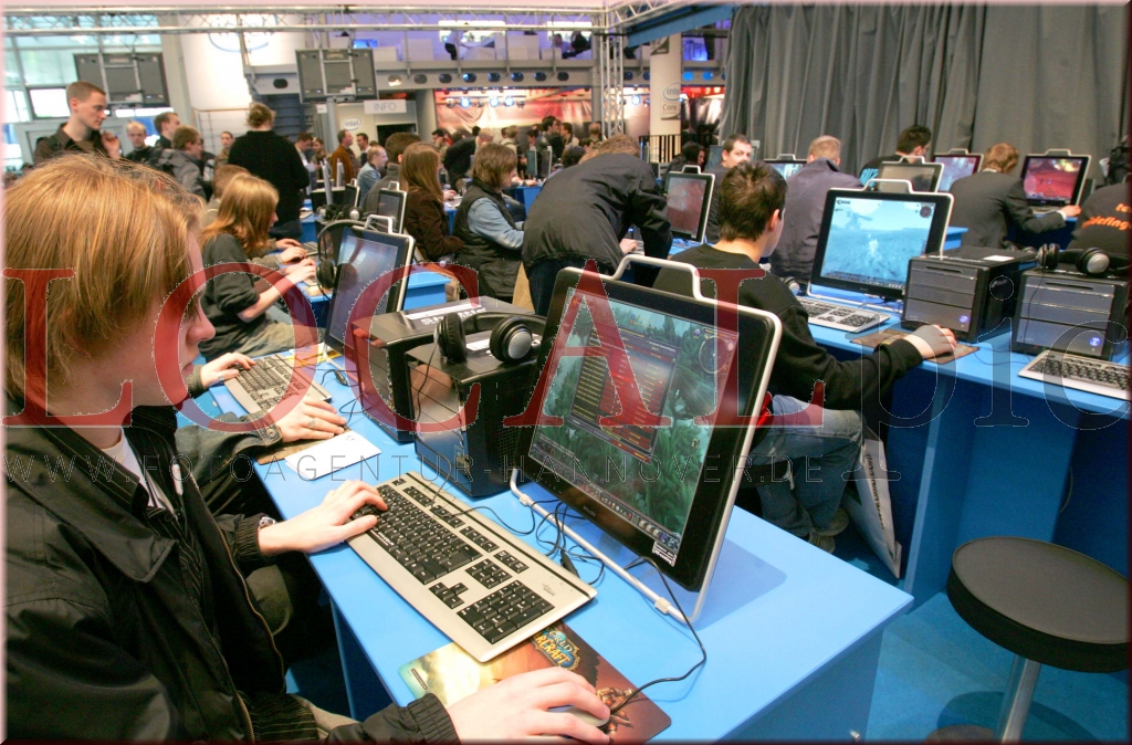 Hannover, Cebit, Stand Intel, jugendliche, Computer, Computerspiele, 16.03.2007