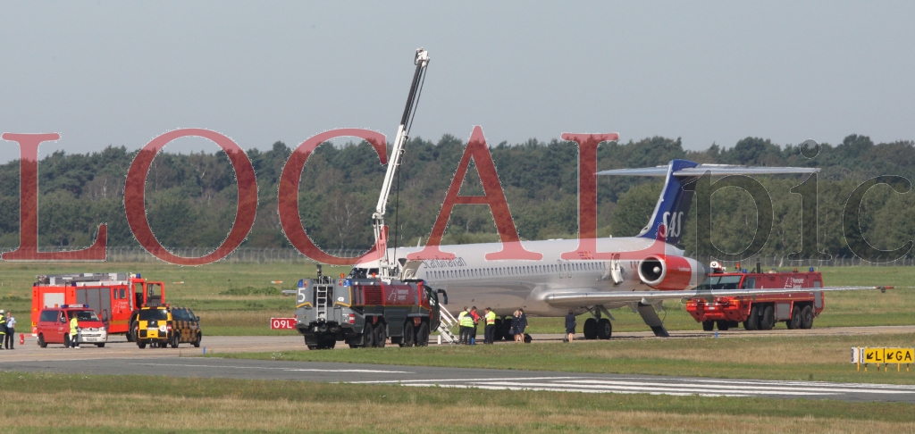 Hannover, Flughafen Langnehagen, Airport, Eine Maschine der, SAS , (Scandinavian Airlines) musste am Dienstag gegen 10.30 Uhr in Hannover notlanden, nachdem es in der Kabine zu einem plötzlichen Druckabfall gekommen war, Notlandung, Flugzeug, Feuerwehr, Fotos, Bilder, pictures