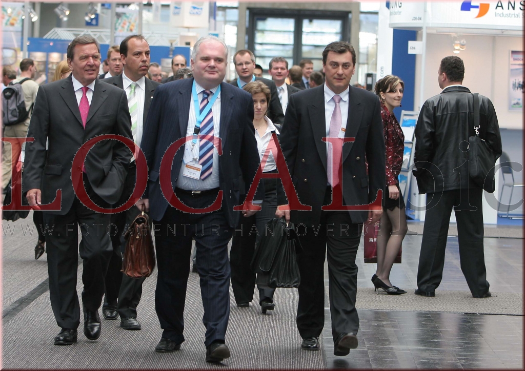 Hannover, Messe, Ex-Bundeskanzler Gerhard Schroeder wirbt für Ostsee-Pipeline, Nord Stream Manager Matthias Warnig, 16.04.2007